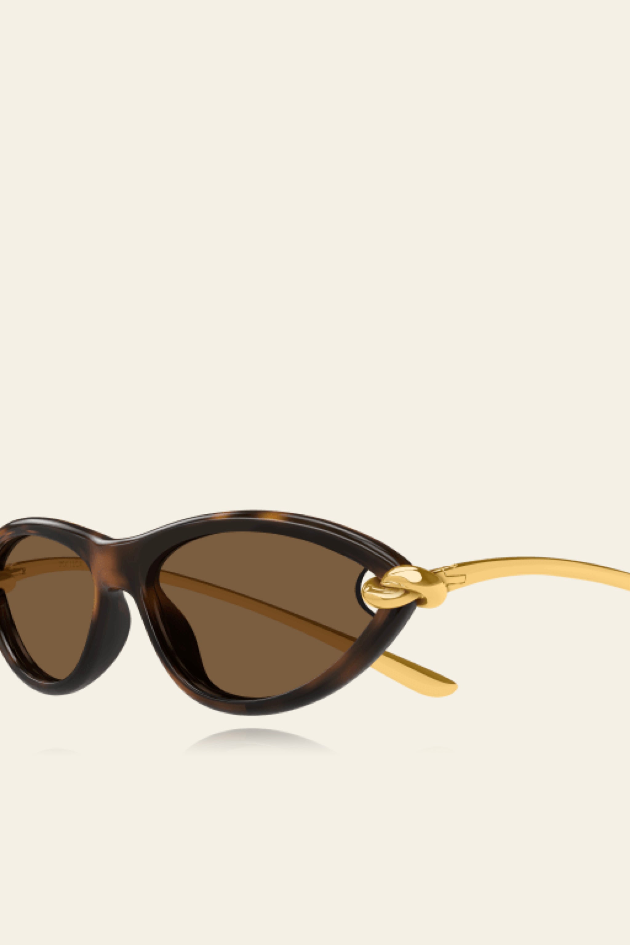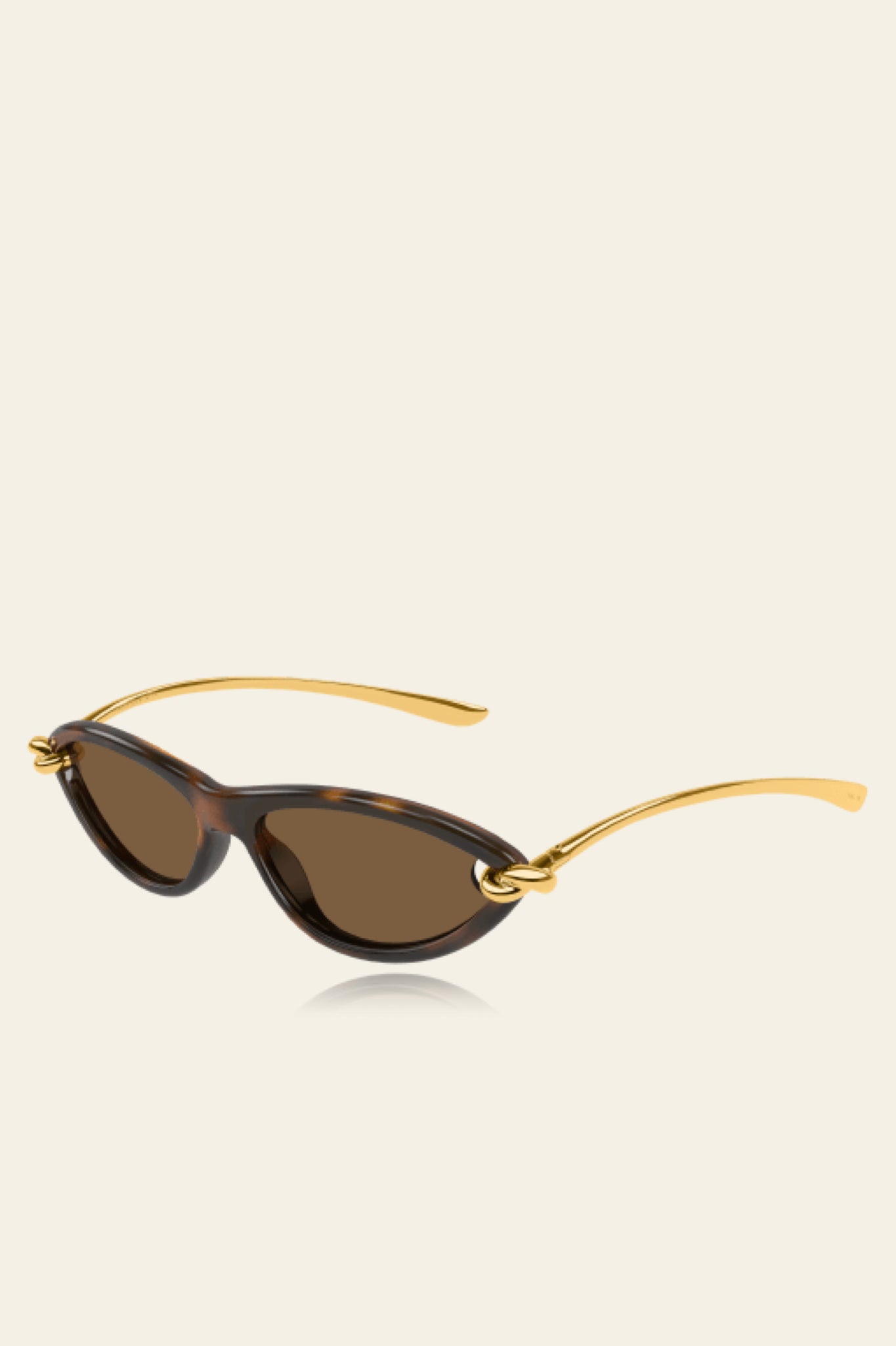 Feminine almond shaped cat eye. Beautifully rounded edges. Hugged by a knot on each endpiece.