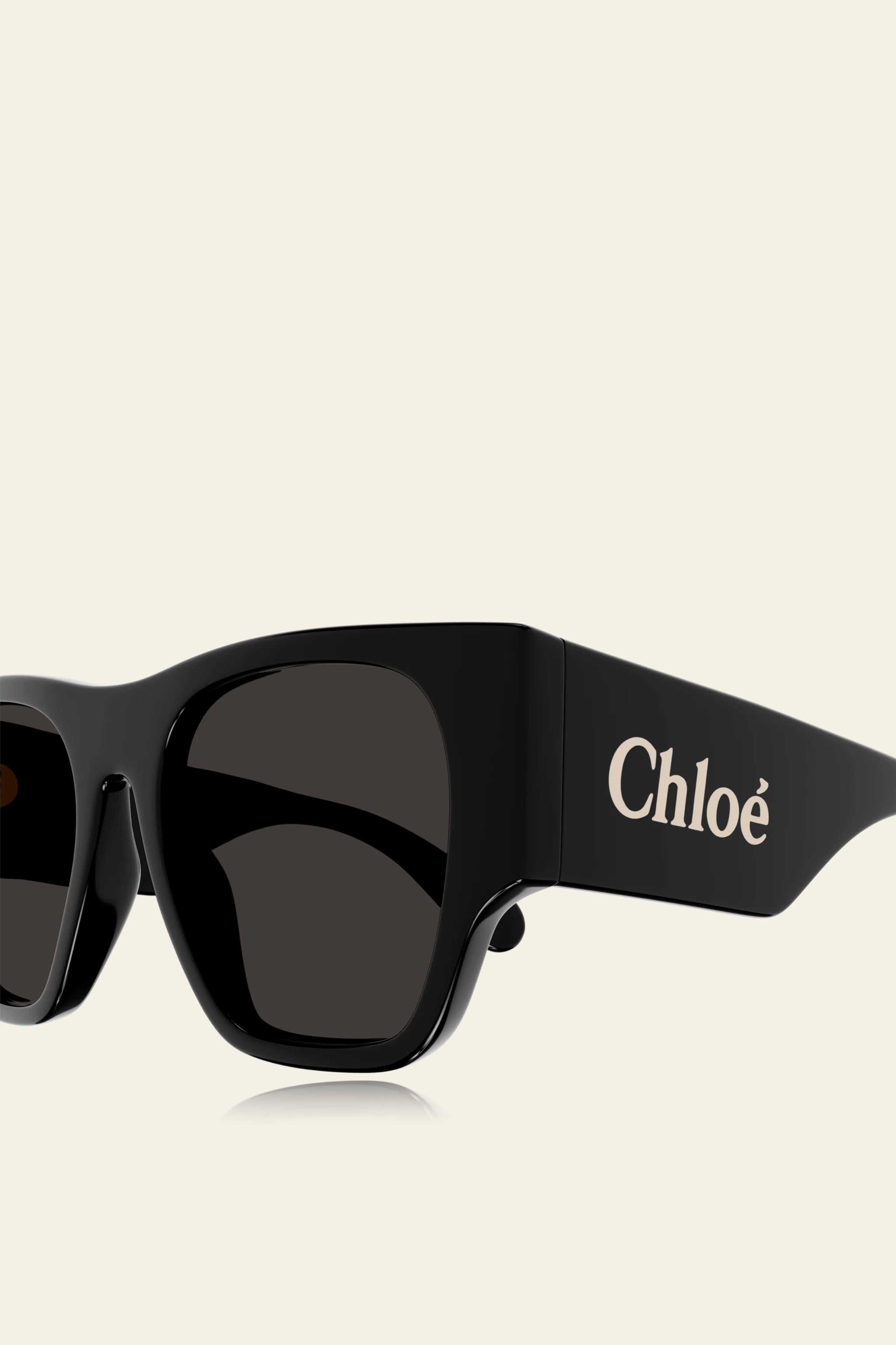 Bold oversized acetate vintage square frame. Chloé logo with enamel in XL size on the left temple.