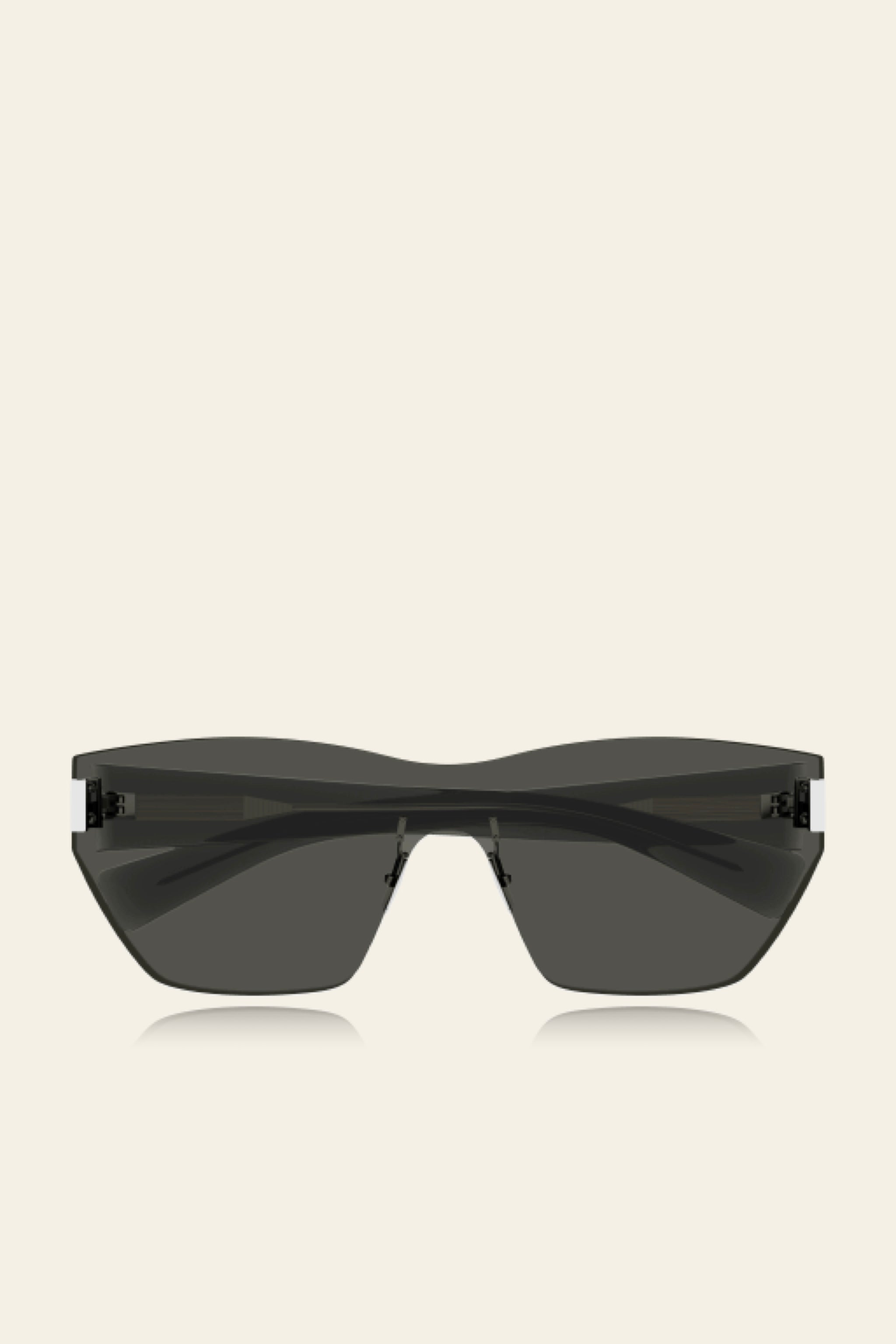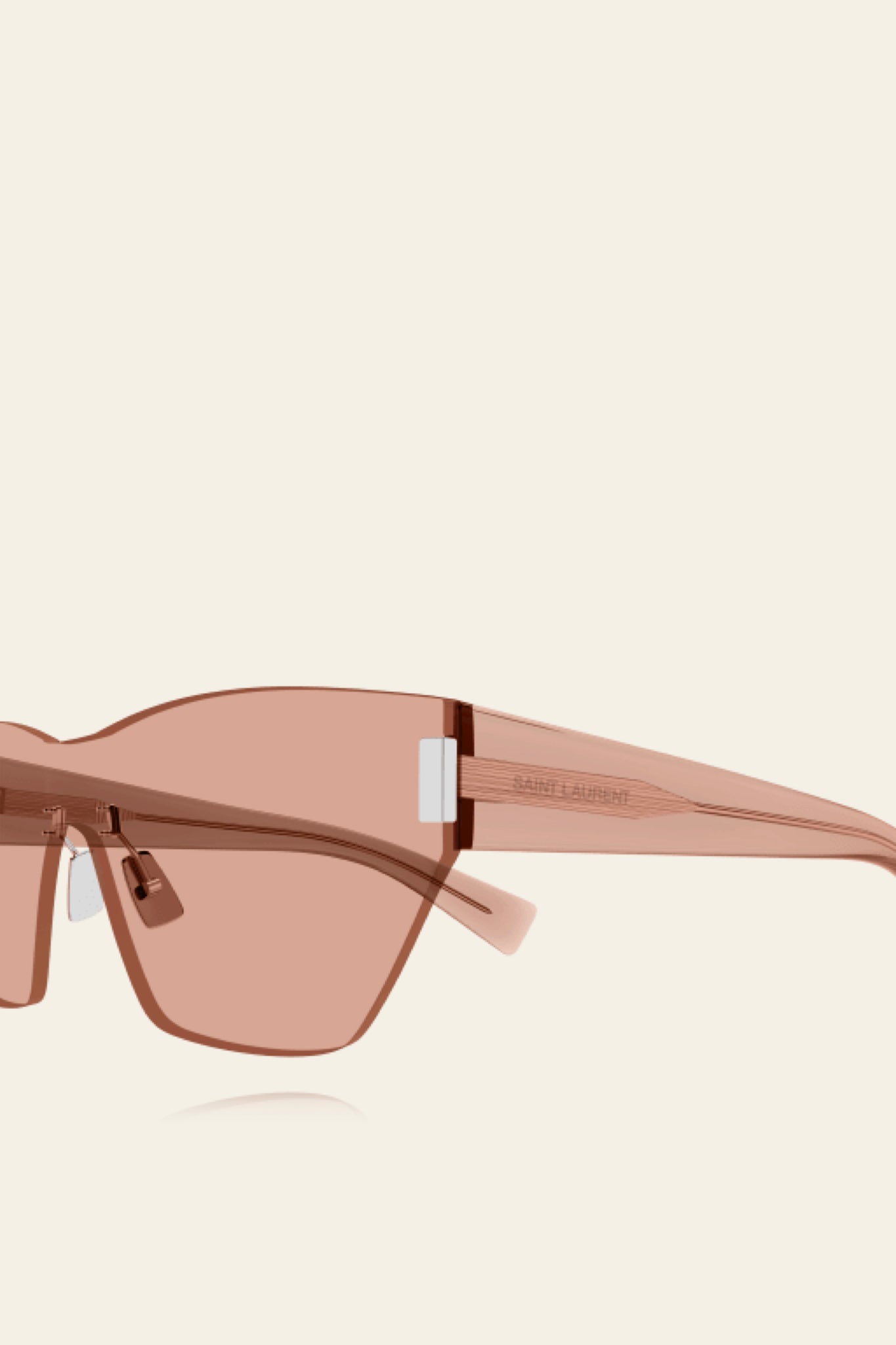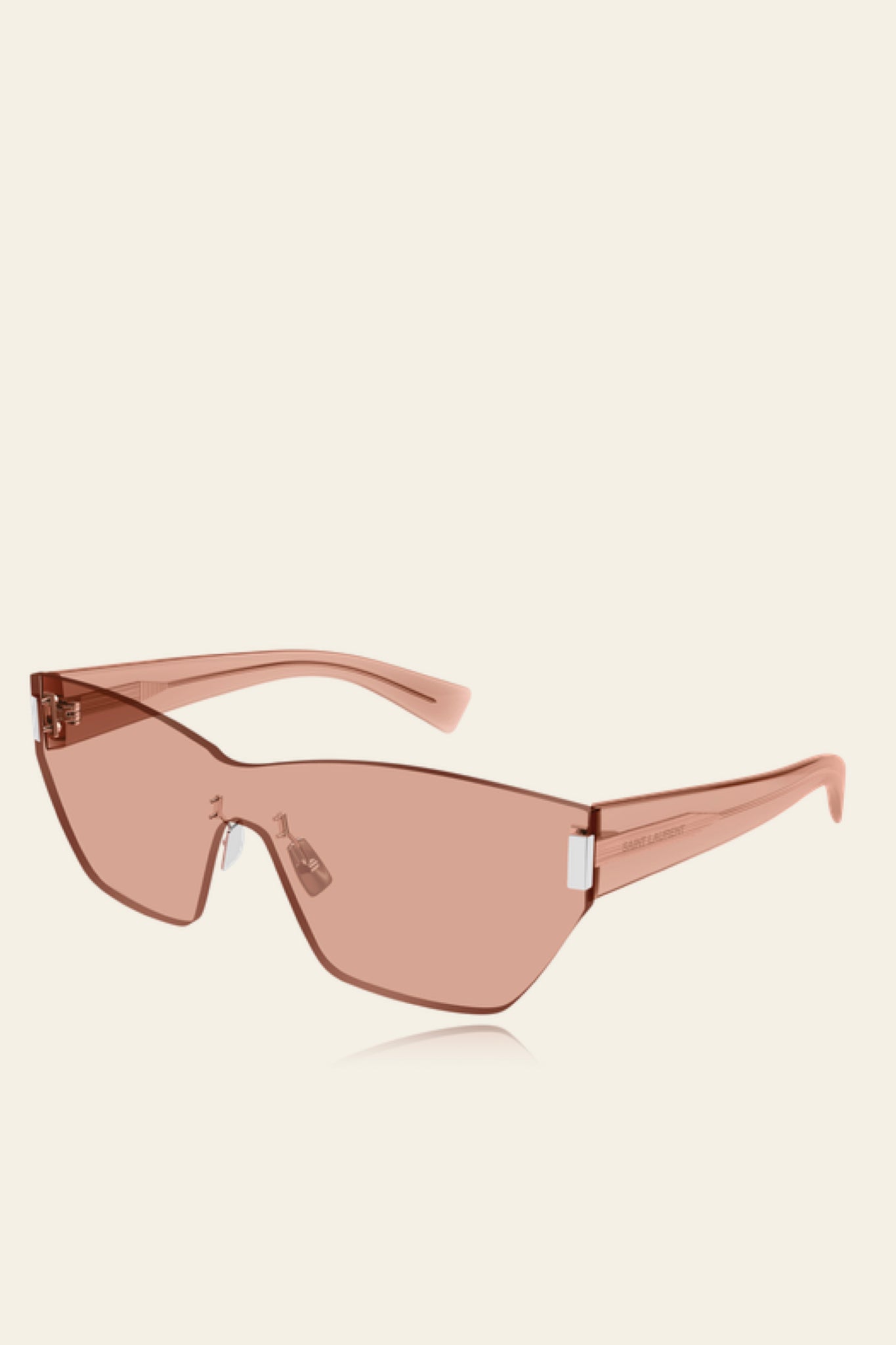 Full mask with a cat eye shape recalling iconic kate style. Corner angle functioning as the hinge block.